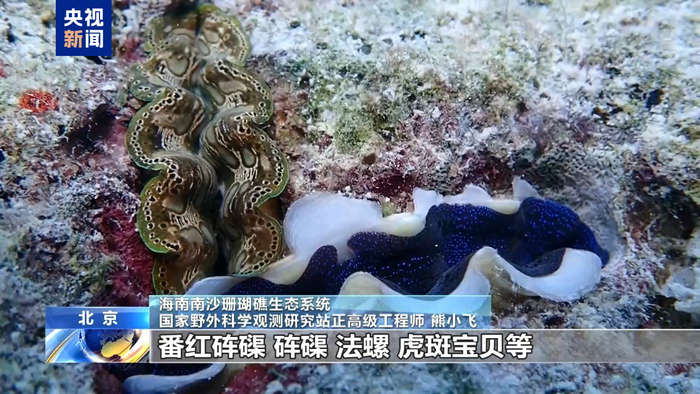 海南南沙珊瑚礁生态系统、国家野外科学观测研究站正高级工程师熊小飞介绍,黄岩岛国家级自然保护区造礁石珊瑚平均覆盖率达到38.8%,属于一个很高水平,是众多珍稀濒危野生动物繁衍栖息的重要场所。在这调查期间发现了玳瑁、绿海龟、番红砗磲、砗磲、法螺、虎斑宝贝等国家一、二级保护野生动物,一共有94种。