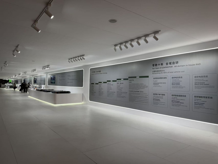 十年下来,零跑建立了覆盖电池整包、BMS、电驱系统、整车控制器、车灯以及部分内饰件的自研自制体系,自研自制零部件已占整车成本约65%。