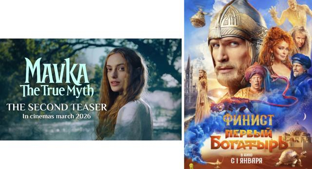 2025年上映的俄罗斯电影《最初的勇士》(右)与2026年即将上映的乌克兰电影《玛芙卡:森林的秘密》同为奇幻类型题材