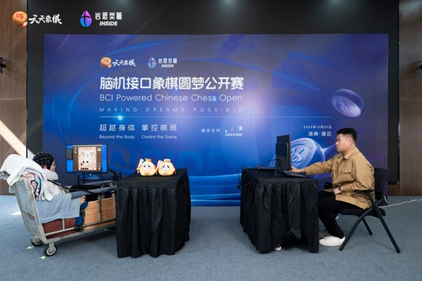 12月29日,恰逢韩彬彬30岁生日。这一天,他借助岩思类脑人工智能研究院(以下简称岩思类脑)的非侵入式脑机接口技术,在“天天象棋杯”年度总决赛现场的“脑机接口象棋圆梦公开赛”上,仅凭意念操控棋子,与自己一直视作榜样的偶像、象棋特级大师孟辰对弈,不仅实现了从“鼻尖触碰”到“思维落子”的跨越,更生动诠释了科技向善的温暖力量。