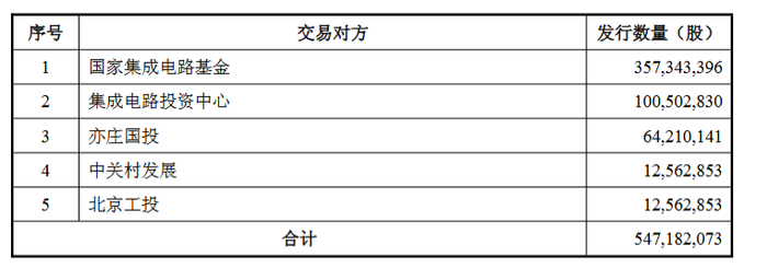 本次交易完成后,国家集成电路基金持有公司A股股票357343396股,占中芯国际公司A股总股本的比例为14.03%,占中芯国际公司总股本的比例为4.18%。国家集成电路基金的一致行动人鑫芯(香港)投资有限公司(以下简称“鑫芯香港”)持有中芯国际公司港股股票382902023股,占公司总股本的比例为4.48%。国家集成电路基金及其一致行动人所持A股股票数量占中芯国际公司A股总股本的比例为14.03%,合计持股数量占公司总股本的比例为8.66%。
