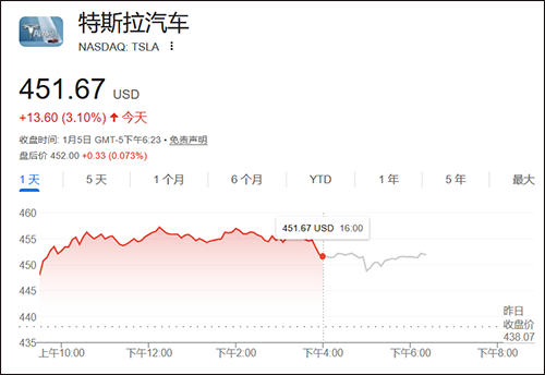 特斯拉大涨超3%谷歌财经
