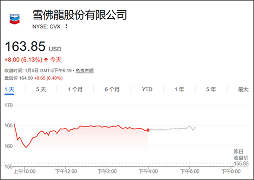 雪佛龙大涨超5%谷歌财经