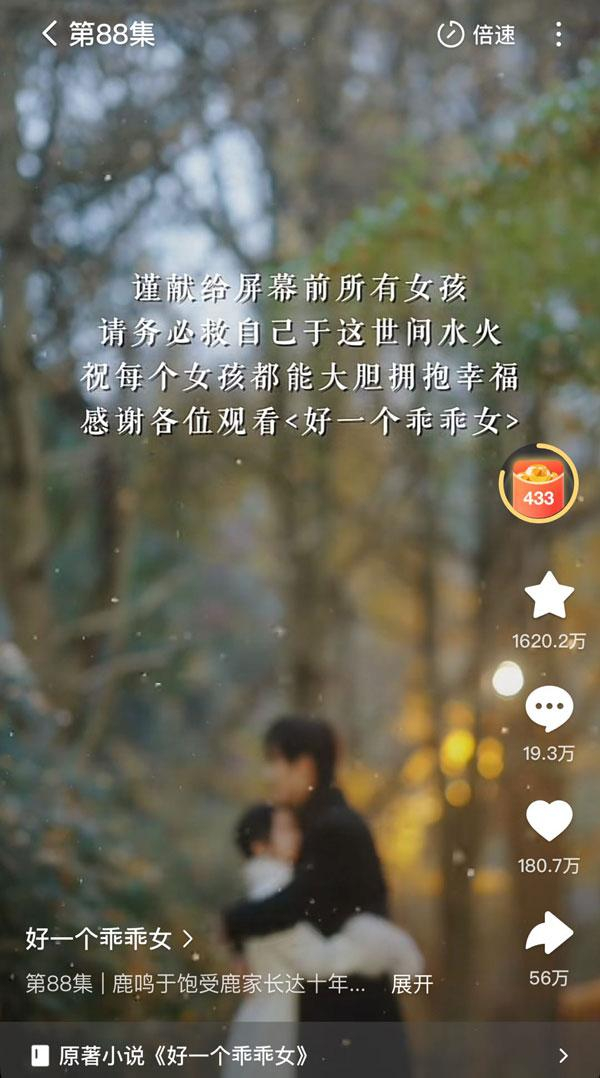 尽管《好一个乖乖女》在对手戏和台词设计上仍有非常明显的霸总短剧味,但这种鲜明直给的风格,击中了目标观众的情感需求。尤其是剧终那句寄语——“谨献给屏幕前所有女孩,请务必救自己于这世间水火,祝每个女孩都能大胆拥抱幸福”,为作品增添了超越剧情本身的情感穿透力。