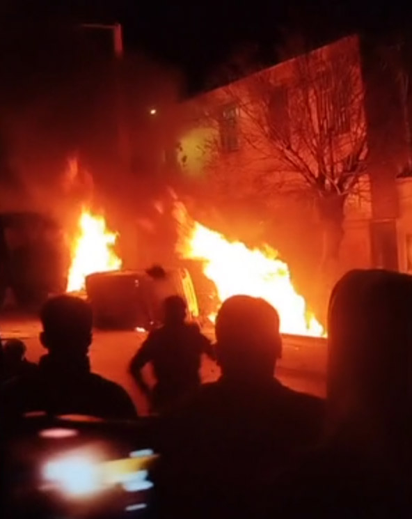 伊朗洛雷斯坦省阿兹纳,示威者在警察局外纵火 视频截图当地时间6日晚间,示威规模仍在扩大,伊拉姆省阿卜达南市爆发大规模示威,大批抗议者在街头举行游行。在伊朗首都德黑兰,许多商贩关闭店铺,与身着防暴装备的安全部队对峙并发生冲突,一些示威者对安全部队高喊“自由”等口号。