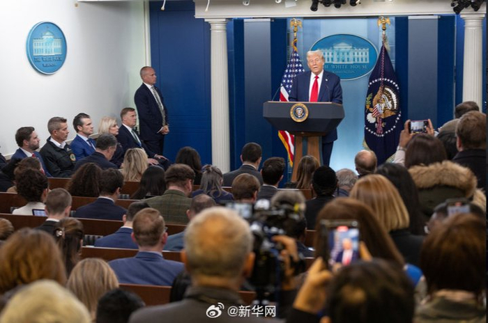 美国媒体曾报道称,特朗普政府正在重新定义新闻发布规则,将播客、网红和保守派新媒体推向中心舞台,同时削弱传统媒体影响力。图为特朗普在首都华盛顿的白宫出席新闻发布会。 图源:新华社