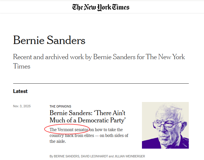 例如,当伯尼·桑德斯抨击特朗普的“帝国主义做法”时,《纽约时报》冠给他的头衔是“佛蒙特州独立参议员”。批评美国外交政策的人或许能获得露面机会,却会无一例外地被贴上“批评者”“活动家”或“争议人物”的标签,而非作为默认的分析主体。他们的存在被刻意标记;而主流立场则保持隐形,因而显得“自然”且“不可见”。这种操作营造出多元主义的表象,实则维系着话语等级秩序,一种“禁而不禁”的排斥机制。
