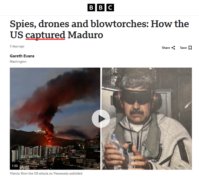 BBC相关报道截图有评论讽刺道,连特朗普本人都未对“绑架”一词提出异议,BBC却抢先划下红线。如此“讲政治”,即便在英国媒体同行中也显得有些另类。这般“觉悟”,恐怕连大洋彼岸的媒体同行都不得不自叹弗如,或深感汗颜。