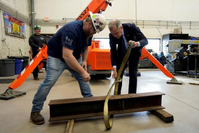 当地时间2025年11月27日,加拿大阿尔伯塔省,加拿大总理卡尼与当地钢铁工人会面。 IC Photo