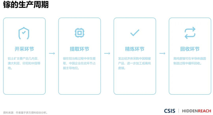 即便是那些并未直接依赖低纯度镓的企业,也受到了中国管制措施的影响。随着供应链向下游延伸,中国的直接影响力虽有所削弱——在精制高纯度镓领域占比约50%,在镓化合物、半导体晶圆等中间产品环节份额有限,但这些下游产品的原料供应仍牢牢掌控在中国手中。