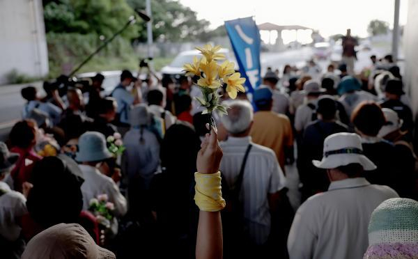 2024年6月28日,琉球岛上的民众在驻日美军嘉手纳基地门前抗议 IC photo