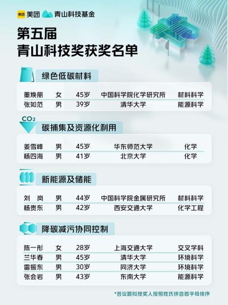 据了解,“青山科技奖”由美团于2021年发起设立,旨在鼓励更多科研力量投身环保研究,助力绿色、低碳、可持续发展基础科研及技术成果转化。至此,累计已有49名青年科学家获奖。