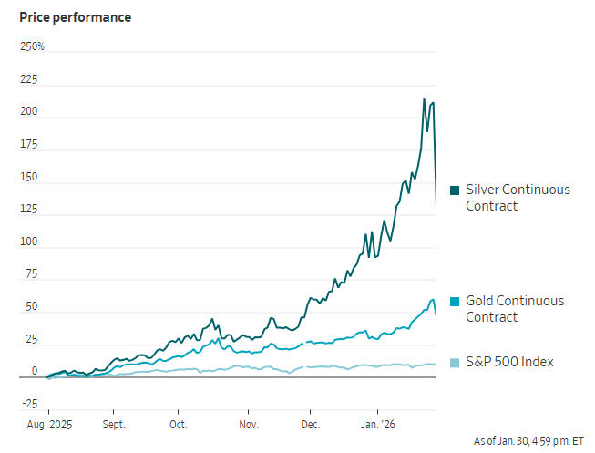 《华尔街日报》总结认为,沃什提名强化了美联储独立性预期,美元反弹,贵金属的避险和对冲逻辑暂时失效,导致周五的金银市场崩盘。但许多人认为,这只是疯狂行情后的正常回调,金银长期趋势仍受通胀、地缘政治和工业需求支撑。