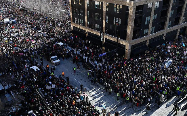 1月23日,美国明尼苏达州民众举行街头示威、集会等活动,抗议移民与海关执法局(ICE)针对非法移民的暴力执法,多人在抗议活动中被逮捕。央视新闻客户端