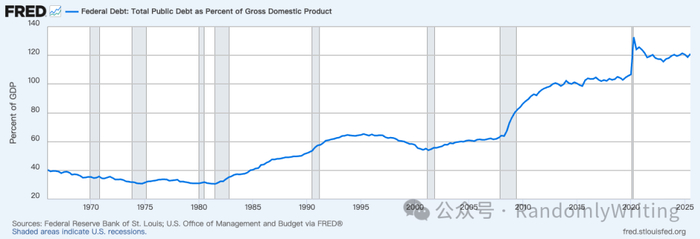 而美国经济表现,截至2025年第三季度,美国联邦政府债务总额占GDP的比例约为121%至124%,债务总额已超过36万亿美元。