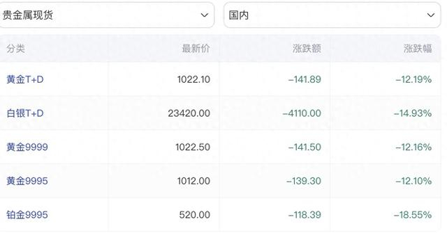 2月2日,国内外贵金属市场延续剧烈波动态势,金价呈现大幅下探格局,截至当日15时18分,国内黄金T+D报1022.1元/克,较前一交易日下跌158.88元,跌幅达13.44%;沪金主连报1008.6元/克,跌幅15.73%;伦敦金现报4548.44美元/盎司,下跌335.92美元,跌幅6.88%,经历1月30日史诗级暴跌后,金价短期跌势未止,市场不确定性持续攀升,在此背景下,国有六大行密集发布公告,集中调整黄金相关业务规则,并同步向投资者发出风险警示,多措并举防范市场波动带来的各类风险。