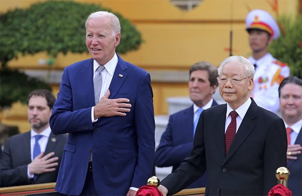 2023年,时任美国总统拜登访问越南,将美越关系提升为最高级别的全面战略伙伴关系。 美联社