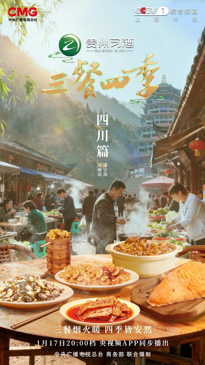 1月17日2000档,中央广播电视总台央视综合频道大型美食文旅节目《三餐四季》第三季播出,四川再次“出圈”。主持人撒贝宁、鲁健兵分两路带领寻味团探索了两座独具地方特色的城市——遂宁和达州。一方坐卧川中腹地,一方踞于川东门户,两座城市留给寻味团别具一格的四川美食印象。