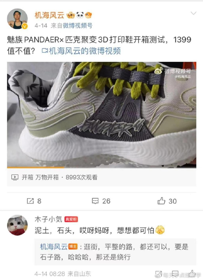 当然3D打印鞋也有槽点,知名科技博主机海风云在一期测评匹克魅族联名的“聚变1.1” 3D 打印鞋时表示:“逛街、平整的路都还可以,要是石子路就难办了。”