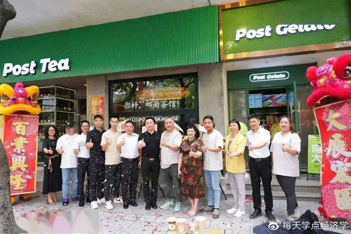 除了新茶饮巨头,跨界玩家中国邮政也再次出手,日前PostGelato雪糕邮局在广东佛山禅城区正式面世,与Post Tea邮局茶馆做邻居,尽享新中式风情。