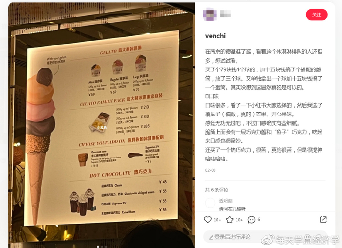 “在南京的德基逛了逛,看着这个冰激凌排队的人还挺多,想试试看。”一小红书博主分享到。
