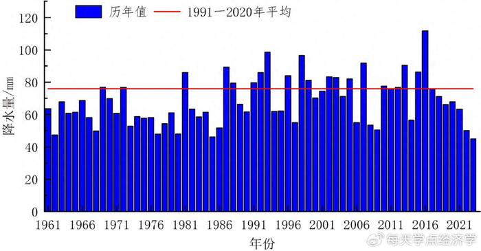 与1961年以来的夏季历史同期相比,2023年夏季新疆平均降水量最少,仅为44.9 mm,较常年偏少4成,比2022年偏少1成。