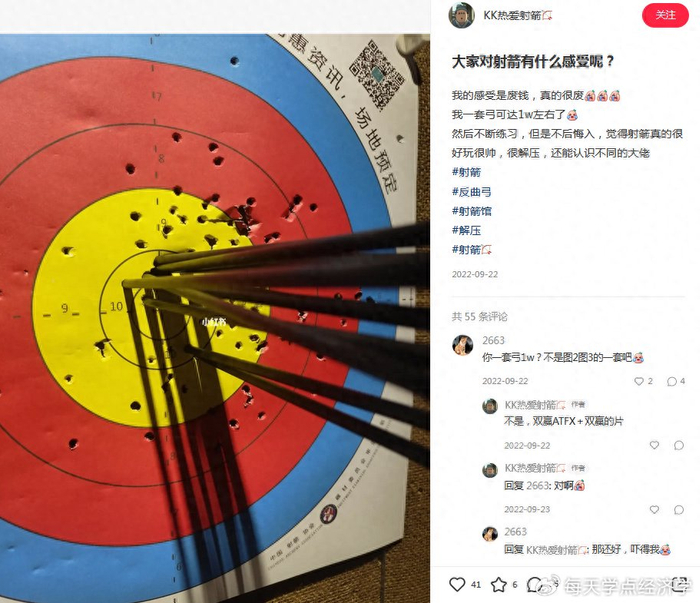 前两年“徒步运动”兴起,新手都能在装备上投入近万元,对射箭这种需要工具的运动来说,花费只会多不会少。