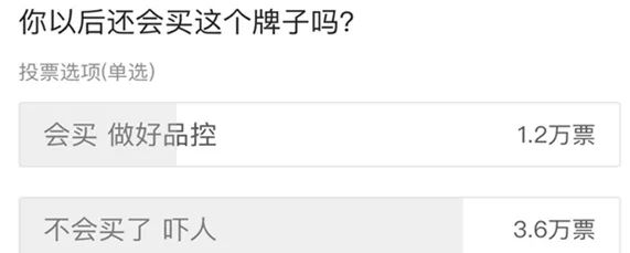 不过,令七度空间母公司恒安国际忧心不已的是,因此次“针头门”事件置身风口浪尖,还造成了目标或潜在目标客群的群体性恐慌,一项投票结果显示,有3.6万网友表示“不会买了,吓人”。