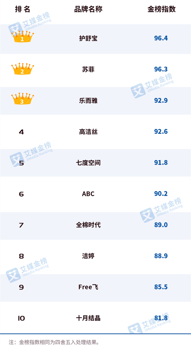 制图:艾媒金榜宝洁于1988年进入中国市场,1991年在内地推出其王牌产品“护舒宝”卫生巾,并辅以重金砸卫视黄金时段广告,随后几年,护舒宝品牌声量与销量飙升,据1998年《中国消费行为调查》数据,护舒宝在中国女性心目中的地位已排在绝对第一。