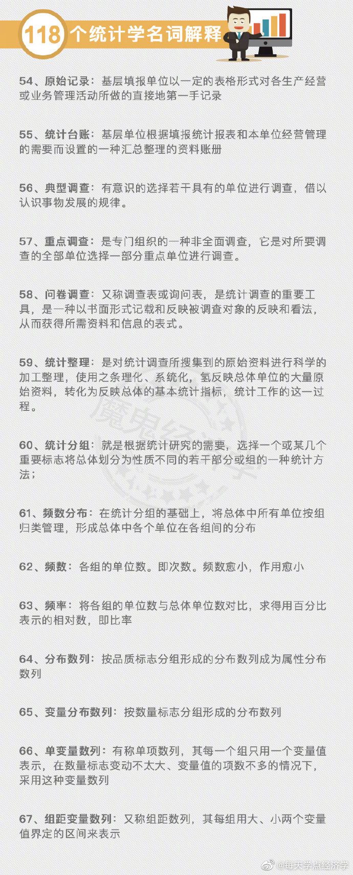 统计学是研究最有效处理数据的科学,它不仅仅是数学的一个分支,而是大量利用数学和计算机的独立学科。总结118个统计学名词解释↓↓↓转给有需要、和想要提升自己的小伙伴~~~