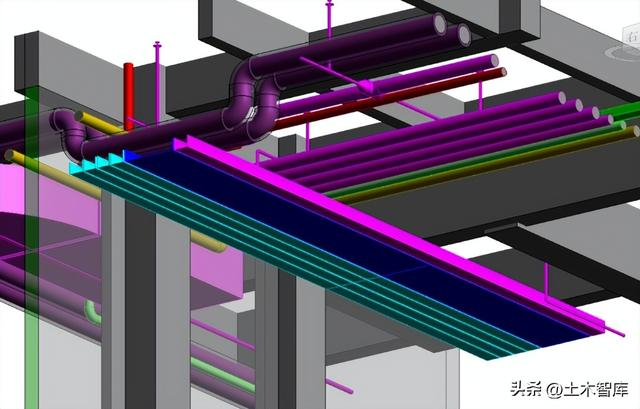 首先,综合支架应用。在我们日常的BIM项目咨询中,越来越多的单位要求在管线优化完毕后进行管线支吊架的设计。
