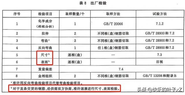 8.更改了重量偏差项目复验规定,规定了:“钢筋的重量偏差项目不应重新取样进行复验”。