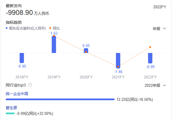 这是碧生源连续第二年归母净利亏损,营收下滑。