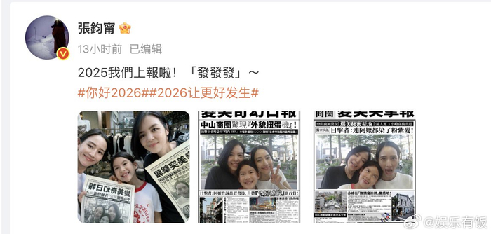 看得出@張鈞甯 在努力清库存了 1天发26条微博,把2025年的库存发完,2026继续发发发