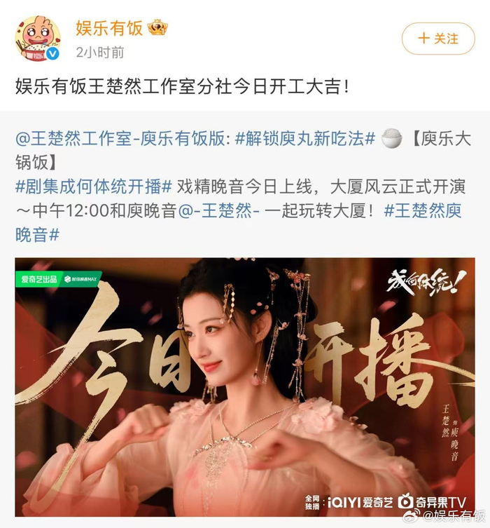 什么?!@王楚然工作室-庾乐有饭版 和小饭同名了!传下去,王楚然工作室打入微博内部了(bushi《成何体统》今日开播,都听有饭的来看这个庾晚音