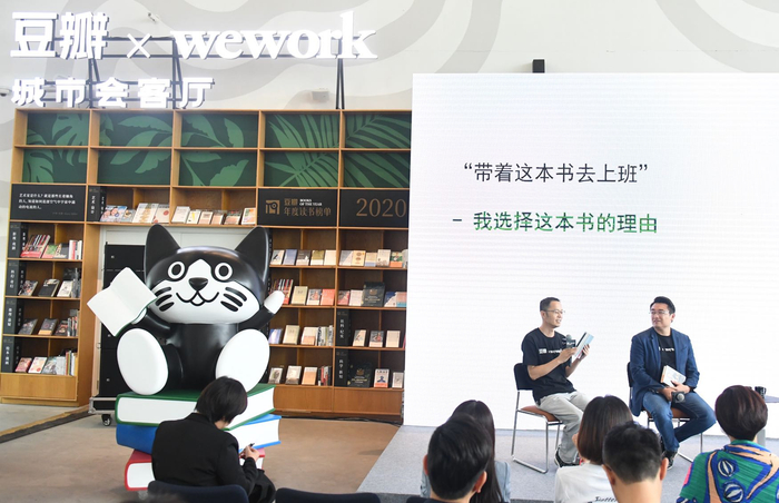 将绿植种进图书馆、空间中错落垂挂的豆瓣图书条目卡、吉祥物豆猫......WeWork中国与豆瓣联手打造的融合双方优势资源的线下联合文化空间“城市会客厅”,9月26日下午正式亮相京城上东公园里社区。