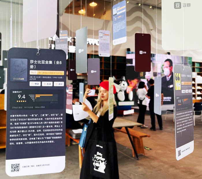 空间采用书阁图书陈列形式,展示了豆瓣2020年度读书榜单与豆瓣热门图书Top10系列书单等,总计40多类,近500种图书。其中最有价值的是豆瓣2020年度读书榜单,分为年度高分、最受关注、文学、社科、影视、绘本、再版经典等,提供了去年最新根据豆友标记及评价数据整理出来的各维度的口碑新书。在这里,可以随机停靠在任何一个感兴趣的阅读门类前,信手取下的任意一本书,都是经得起豆友考验的高质量作品。正如毛姆所言:“培养阅读的习惯就是为自己构建一座避难所”,将爱读书的人们聚在一起,便是广厦千万间。