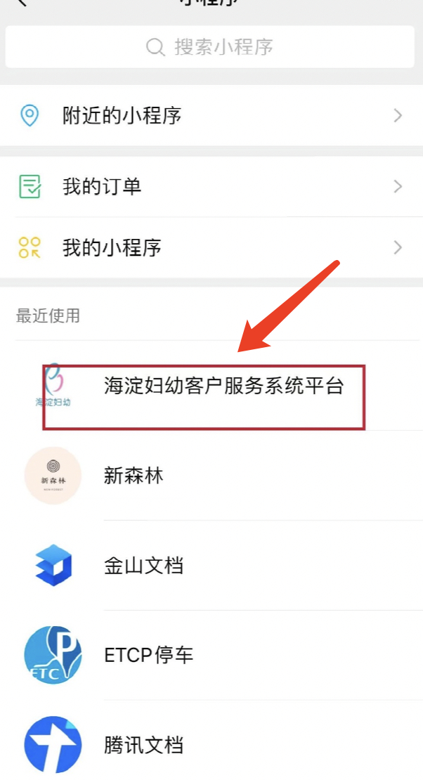 微信小程序搜索:海淀妇幼客户服务系统平台;
