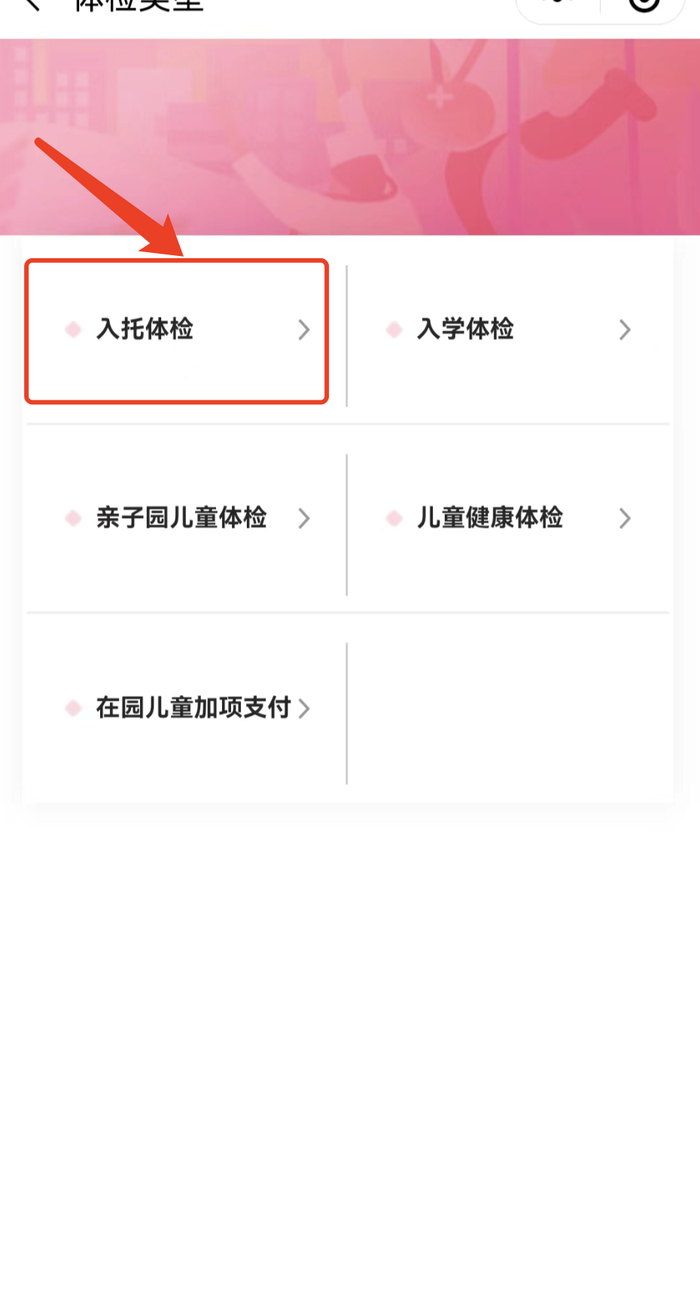 选择预约体检:个人体检-儿童体检-入托体检;