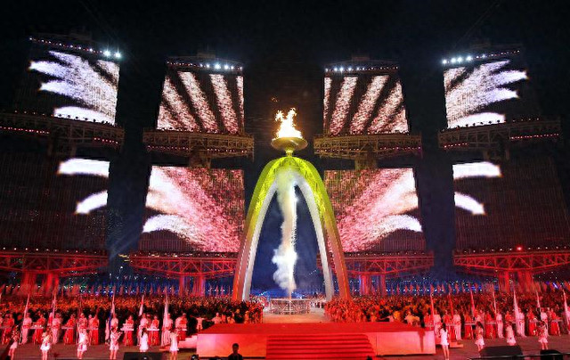 2010年11月12日,第16届亚洲运动会开幕式在广州海心沙岛举行。这是在开幕式上,主火炬熊熊燃烧。新华社记者 凡军 摄广州承办亚运会除了财政投入,市场开发、捐赠等收入成为重要来源。赛后统计,广州亚运会赞助企业达52家,赞助商数量、赞助金额远超历届,创下当时亚运会市场开发成果之最。