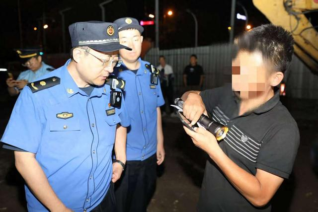 近日,市城管执法局联合市生态环境局、市教育考试院开展夜施扰民联合执法。南三环木樨园桥附近的一处施工工地,有3台挖掘机正在进行施工作业并发出噪音,此时已是晚上11点15分,工地两侧不远处就是居民楼。经检查,现场施工人员无法出示夜间施工证明,执法人员当场责令其停工。