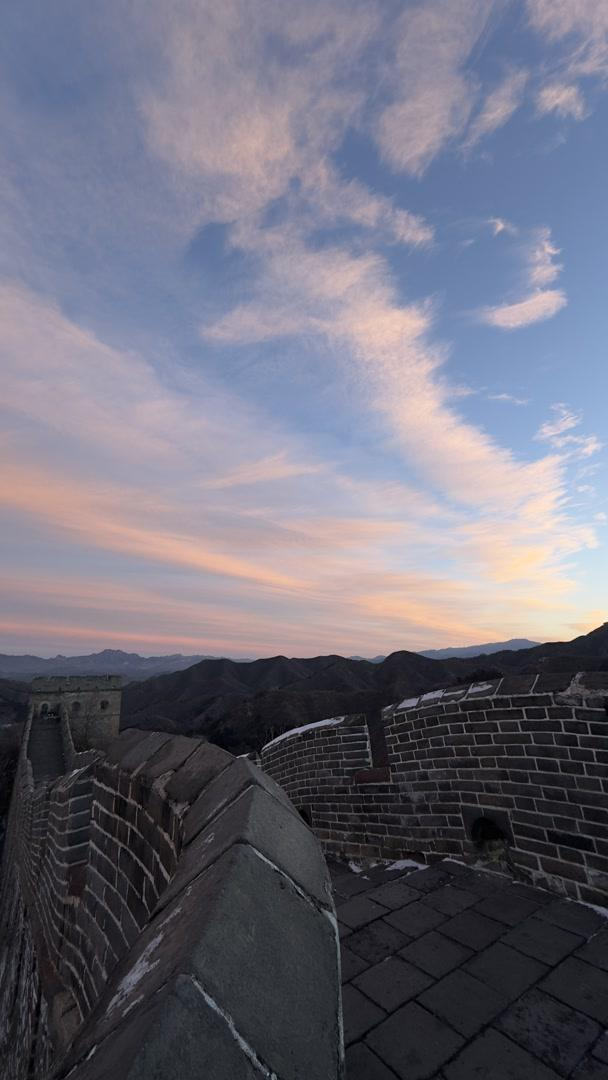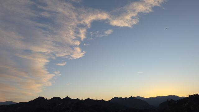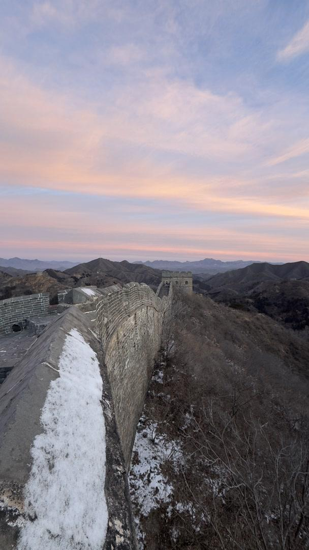 12月24日,雪后清晨,河北省滦平县的金山岭长城,出现绚烂夺目的朝霞景象。