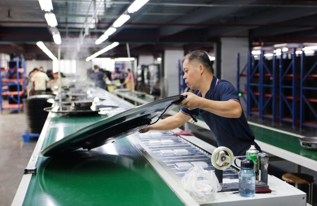 工人正在为暖菜板安装电子元件。李源|摄10年间,张湘只专注暖菜板这一个品类。她根据平台提供的消费趋势和市场反馈,不断迭代产品:从基础保温,到可旋转、可分区、可打火锅,再到可卷折的硅胶款,功能日益丰富。