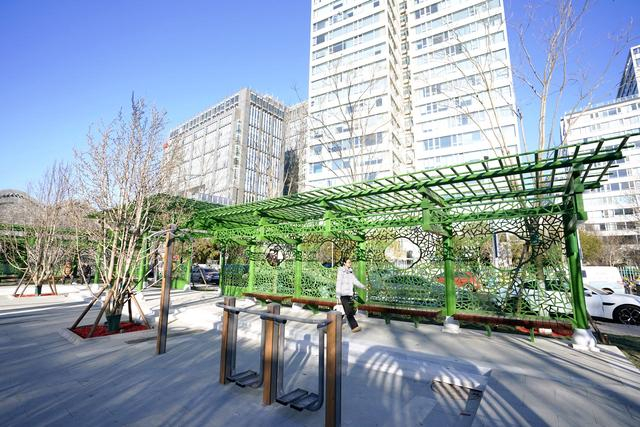 受壁街项目还着重改善了道路周边的休憩空间。项目开工后,道路沿线同步建设3处口袋公园和多块小微绿地,融合灰砖、绿植等元素,织补白塔寺北缘风貌。