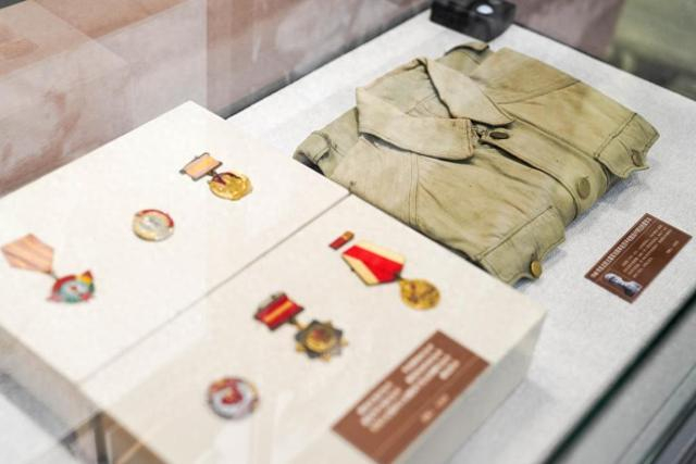 一个展柜里,一件泛黄的军服和几枚奖章一同整齐摆放。这是1948年四平收复战时,东北民主联军战士刘雨亭穿过的军装。