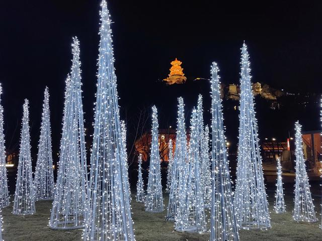 12月30日晚,首钢园内的灯光美轮美奂,工业遗存被璀璨灯光点亮,充满了科幻与未来感,迎接新年的到来。