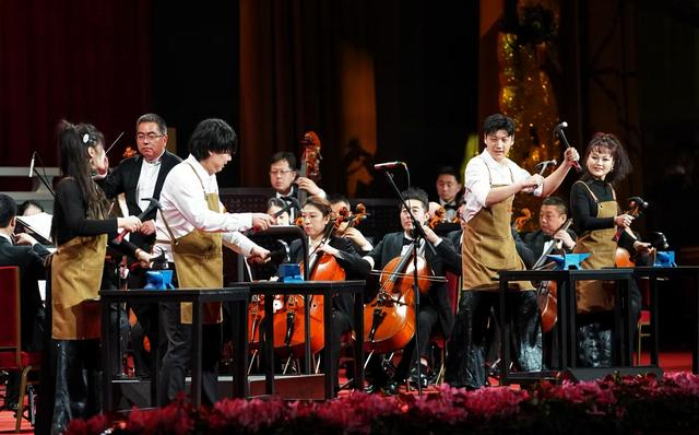《铁匠波尔卡》演奏现场。北京日报客户端记者 方非摄西方经典曲目也在音乐会上轮番登场。小约翰·施特劳斯的《蓝色多瑙河圆舞曲》如流水般轻盈,约瑟夫·施特劳斯的《铁匠波尔卡》上演铁砧打击乐,几位身穿铁匠服饰的演奏家带来诙谐欢快的“铁匠作坊”场景,让观众忍俊不禁。《万马奔腾》《渔舟唱晚》等传统曲目,则在民族器乐与交响乐团的交织中勾勒出古典意境,开启中国作品与世界旋律的对话。男高音歌唱家薛皓垠更是以《北京颂歌》和《我的太阳》两首中西经典,为观众献上祝福。