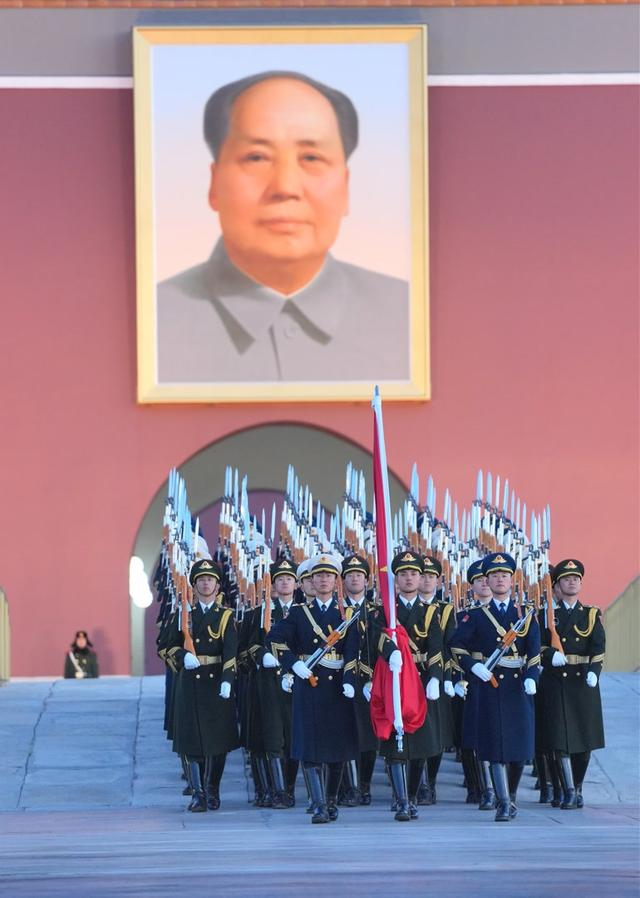 和冠欣摄7时30分,嘹亮的升旗号角划破晨空,人群瞬间安静下来。只见国旗护卫队的队员们身着笔挺的军装,迈着整齐划一的步伐从金水桥走来。从金水桥到国旗杆下,103.5米、正步138步,军靴踏在地面上的声音铿锵有力,敲在每个人的心尖上。现场观众纷纷举起手机,定格下这令人热血沸腾的画面。