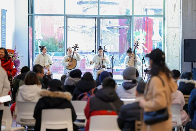 仪式结束后,隧道窑空间的一场民乐喜乐会吸引游客观看。四位民乐演奏家以中国传统乐器演绎经典与现代曲目,悠扬的乐声在古老的窑址间回荡,营造出穿越千年的沉浸式艺术氛围。坐在前排的赵女士拿着手机一直录像,她和女儿最喜欢民乐版的《西游记》片头曲,一起跟着音乐摆动身体。“元旦来艺术空间内听一场音乐会,很有迎新的仪式感!”她们在园区内逛了大半天,打算在一尺花园餐厅享用晚餐后再离开。