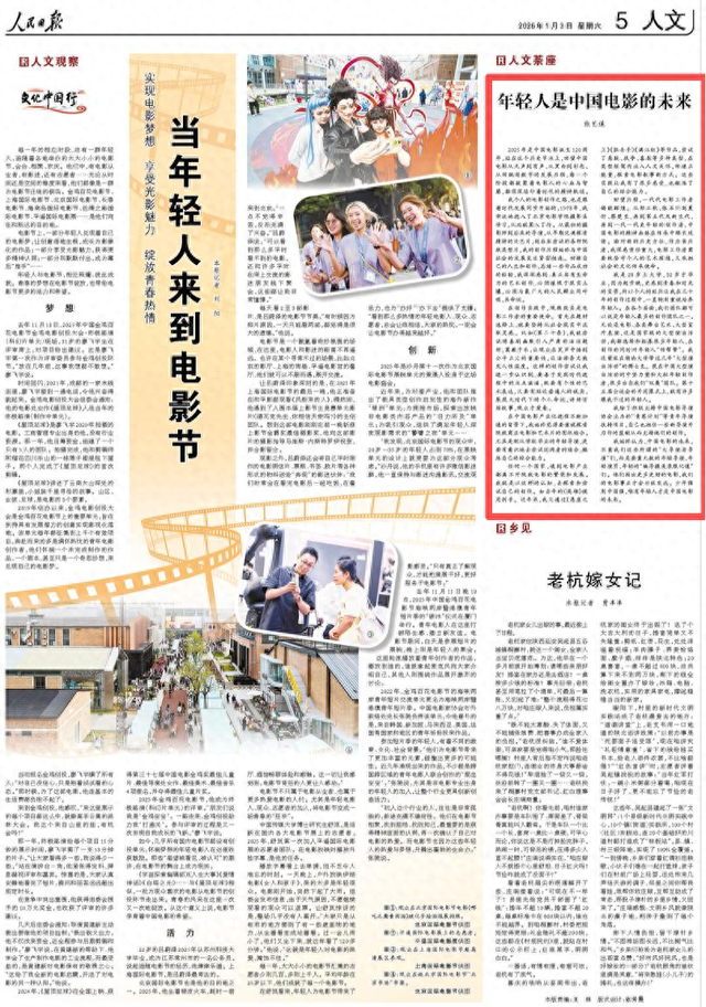 2026年1月3日,《人民日报》第5版刊发导演张艺谋的文章《年轻人是中国电影的未来》。